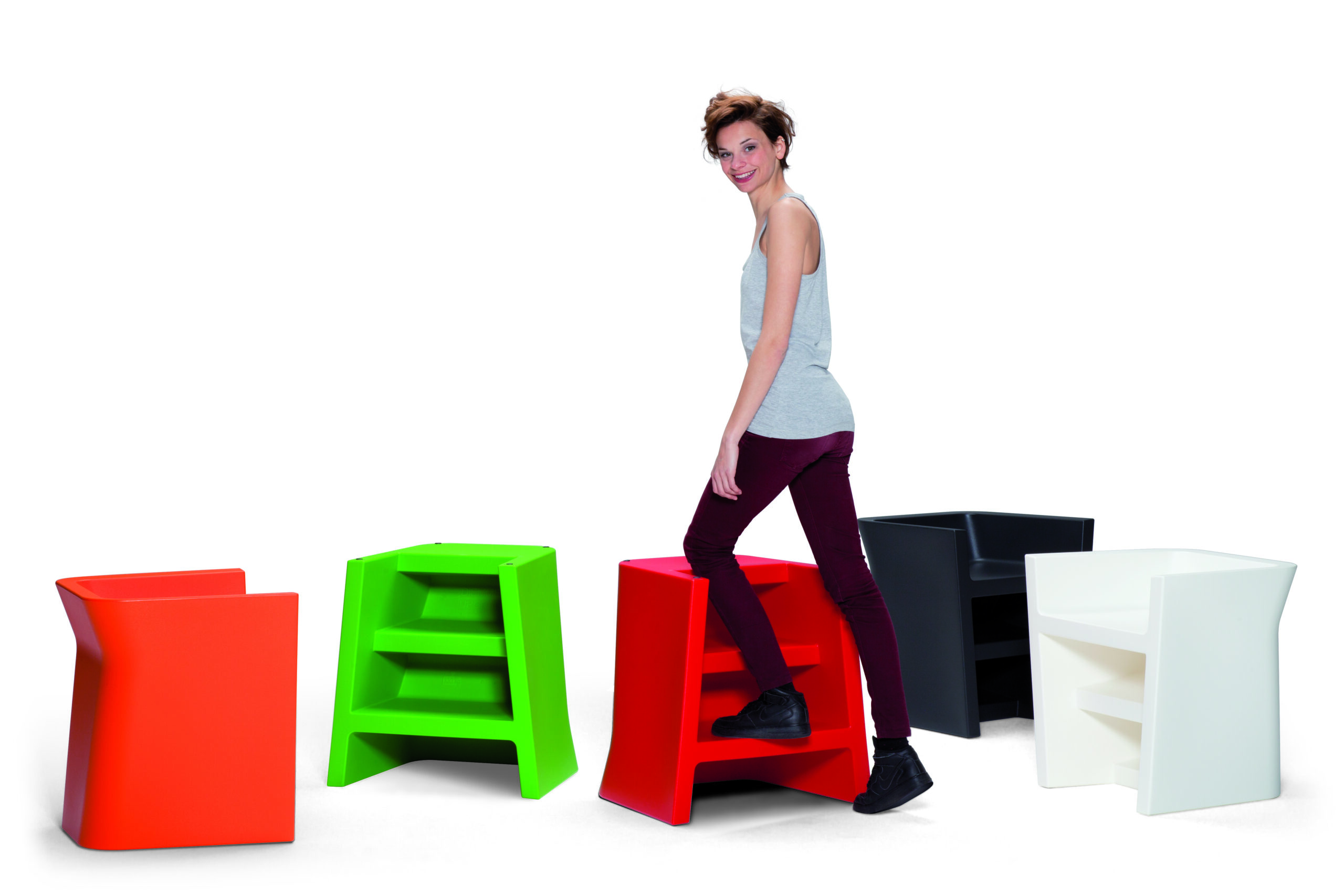 “Upgrade” di Diemmebi è un innovativo complemento d’arredo che unisce funzionalità e design. Questa poltroncina, adatta sia per interni che esterni, si trasforma magicamente in una scaletta con tre gradini semplicemente girandola. Realizzata in materiale plastico completamente riciclabile, resiste fino a 130 kg e non necessita di meccanismi complessi per la trasformazione. La tecnologia rotazionale e il design made in Italy ne garantiscono durabilità, comfort e praticità, risolvendo in modo originale le necessità quotidiane di ogni casa.